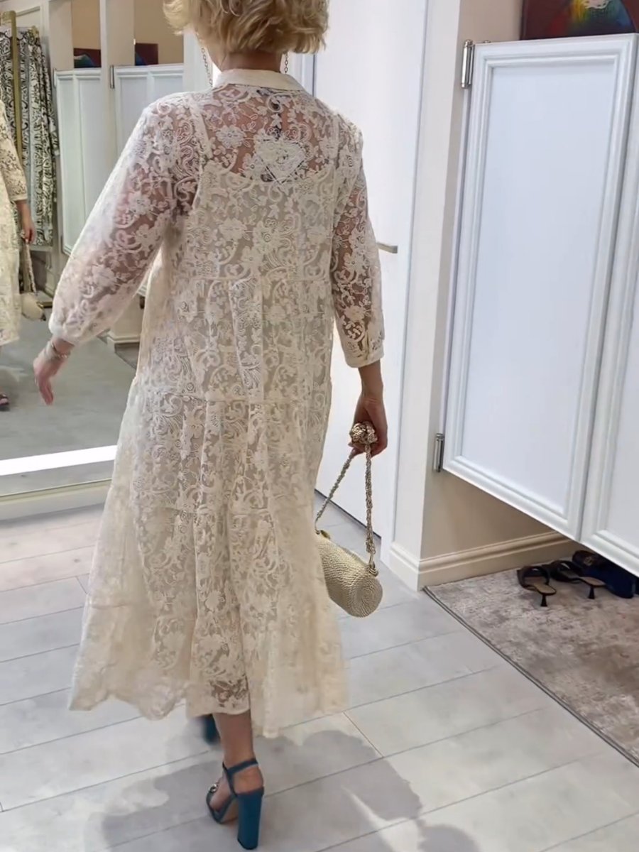 This Cream Lace Two Piece Dress exudes elegance with its intricate lace design. Crafted with precision, this dress is perfect for special occasions. Elevate your style and stand out with this stunning two-piece dress.