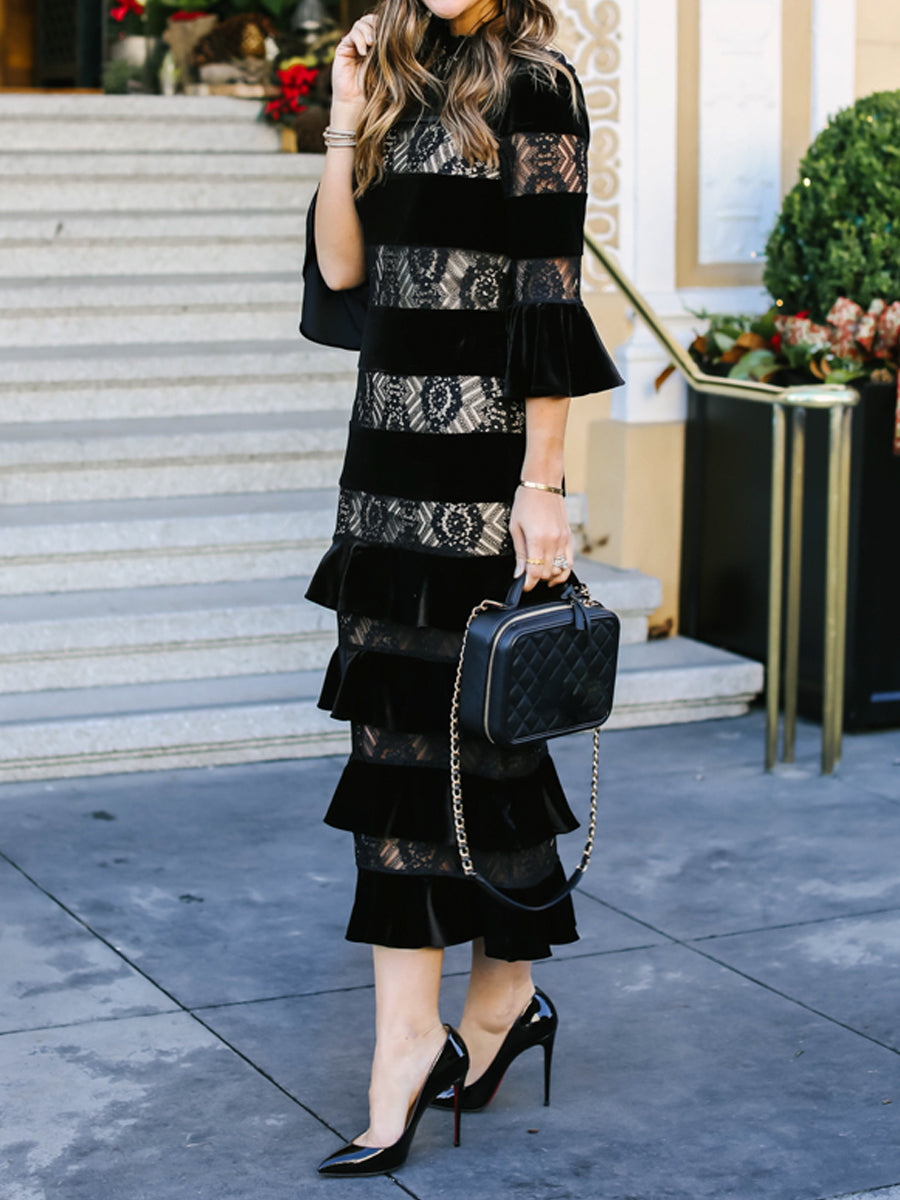 Crafted with stunning lace patchwork, this party dress exudes elegance and sophistication. The intricate design adds a touch of glamour to any occasion. With its exquisite details, this dress is sure to make you stand out from the crowd. Elevate your style and make a statement in this gorgeous piece.