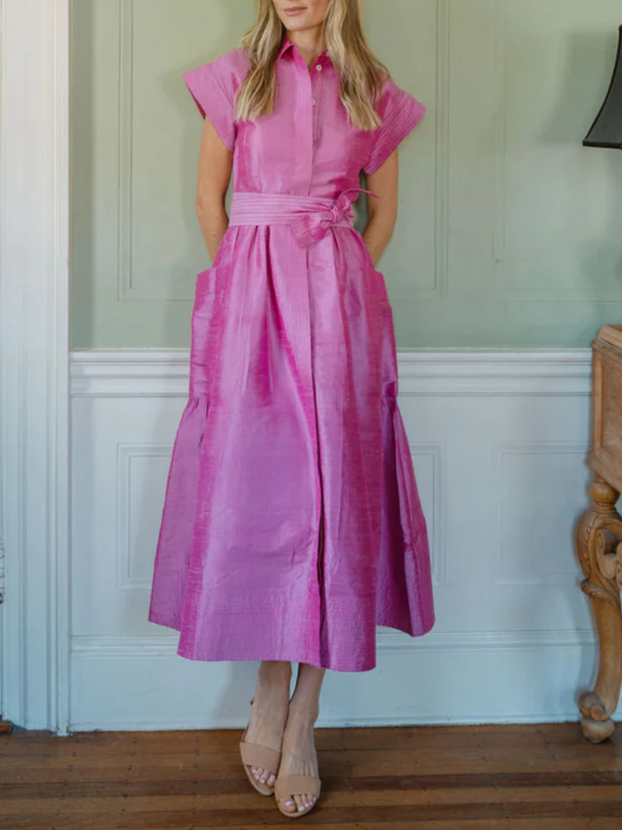 - Cinched tie waist (detachable belt)
