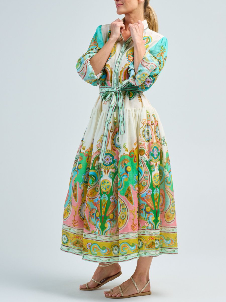 This Printed Lined Long Sleeve Shirt Dress offers both style and comfort. The intricate design adds a touch of elegance, while the lined interior ensures a comfortable fit. Made for those who value both fashion and comfort.