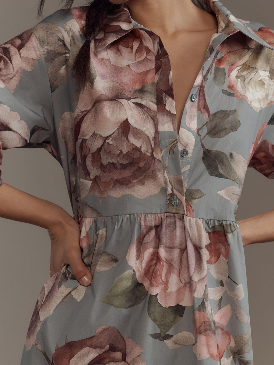 Expertly crafted with a beautiful floral design, our Printed Long Sleeve Shirt Dress effortlessly combines style and comfort. Made with high-quality materials, this dress is perfect for any occasion. So why settle for anything less? Upgrade your wardrobe with our stunning Printed Long Sleeve Shirt Dress today.