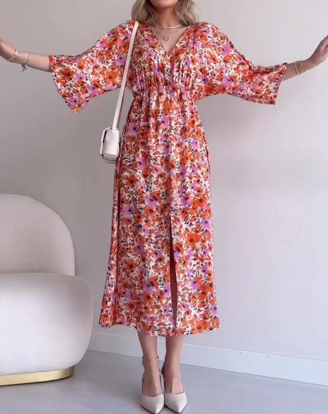Elegant Floral Elastic Flowy Dress