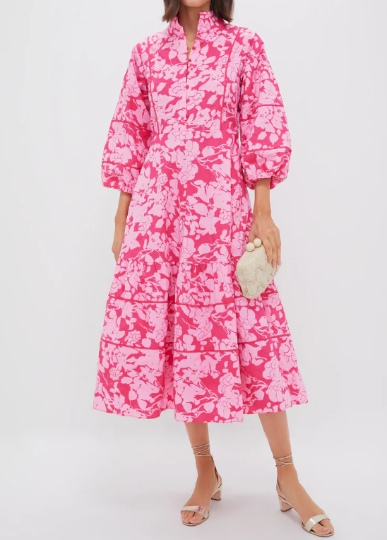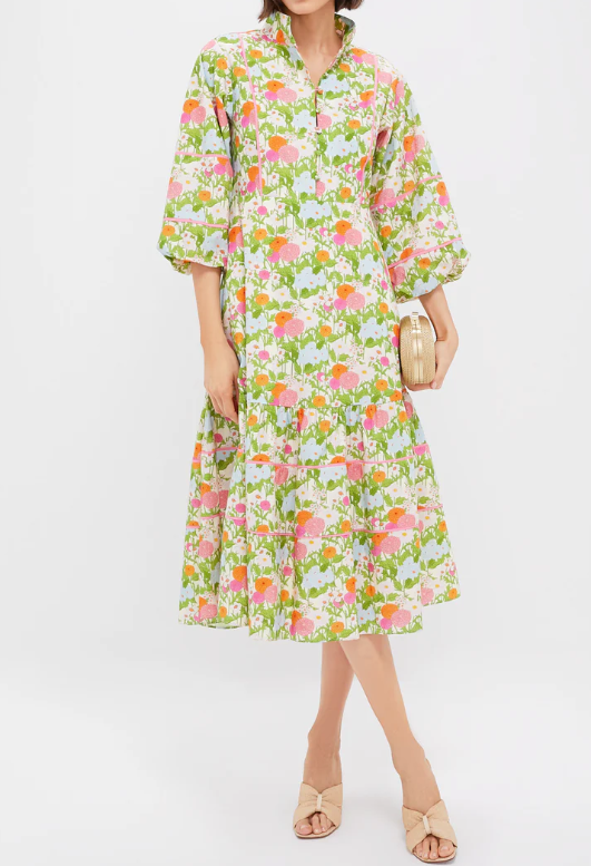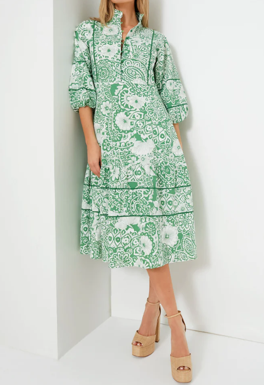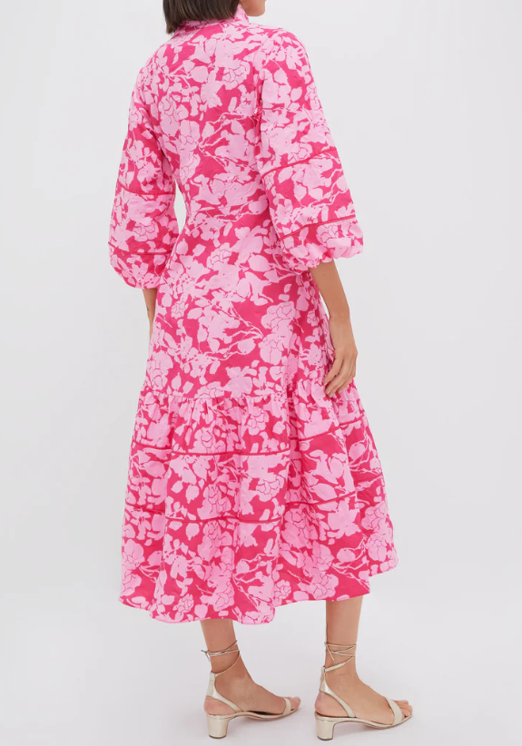 The Multi Midi Dress is perfect for warm days spent out and about. This midi boasts three-quarter length puff sleeves, a fit and flare silhouette, and a tiered skirt with piping panels. The eye-catching design and textured fabric are the cherries on top! Pair with heels and a clutch, or simple sandals and gold jewelry.