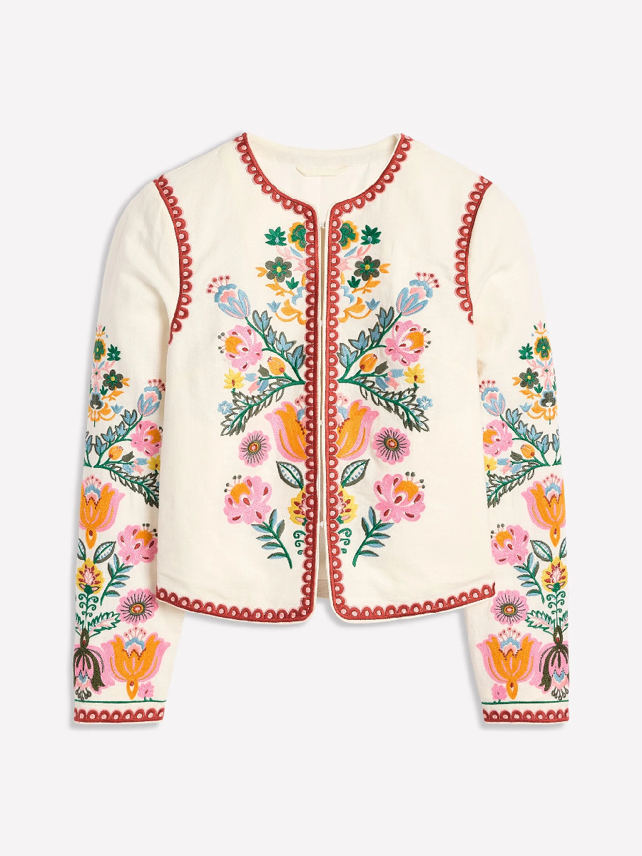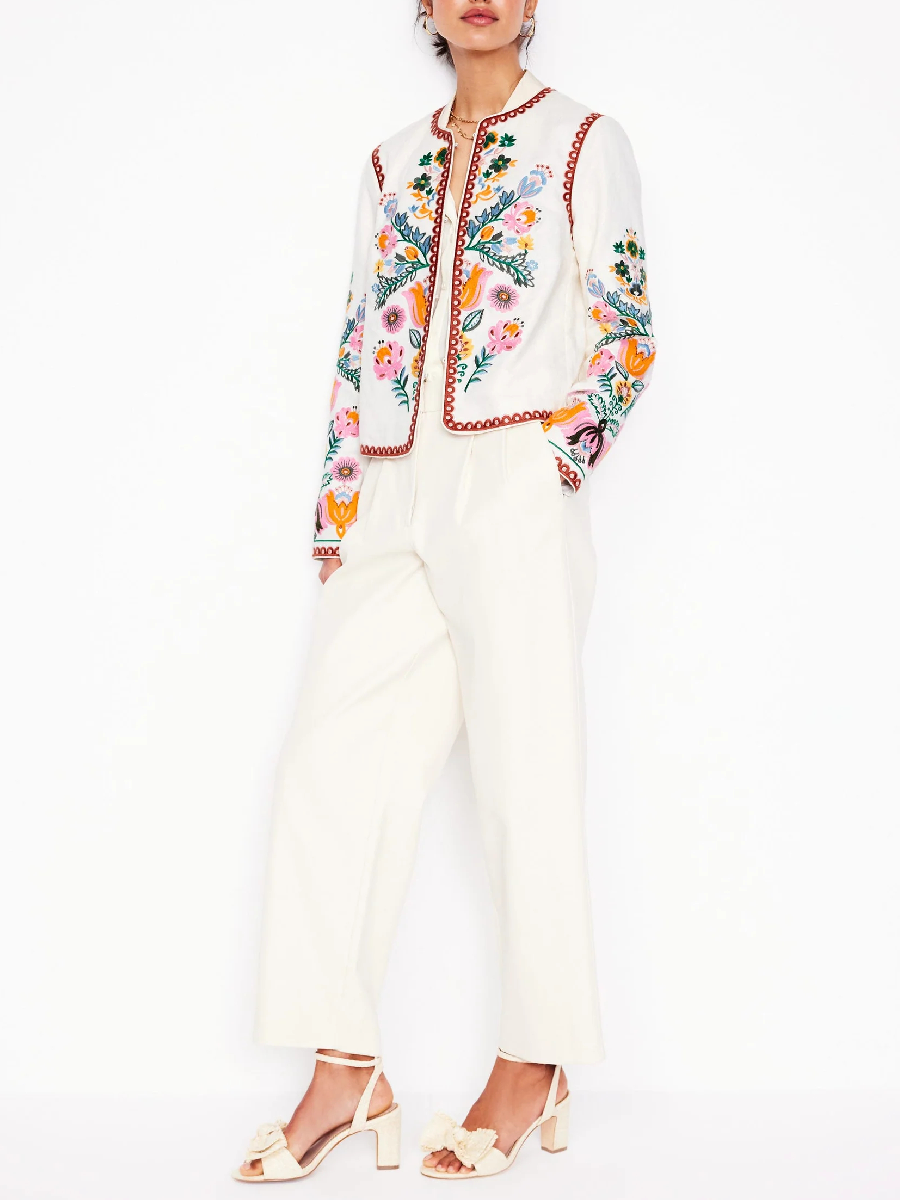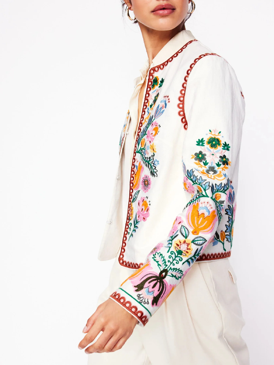 The Tulip Fusion Embroidered Jacket is crafted for comfort, making it the perfect addition to your wardrobe. With its expertly embroidered details, this jacket is both stylish and functional. Enhance your outfit with this luxurious piece.